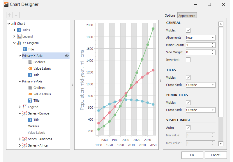 - Numerous customization options, including the built-in Chart Designer (available at both design and runtime)