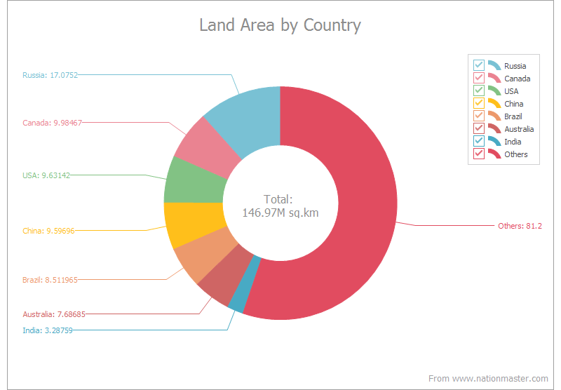 - Eleven view/series types: Area, Bar, Line, their stacked and full-stacked versions, Pie, and Donut