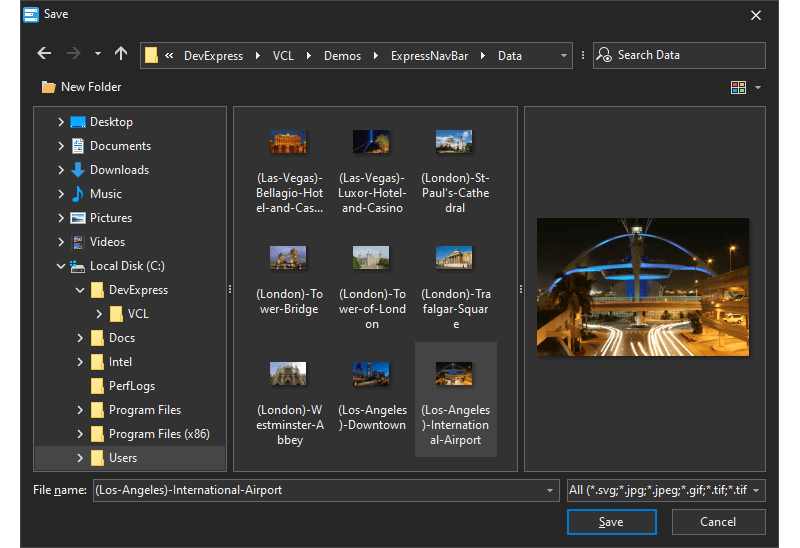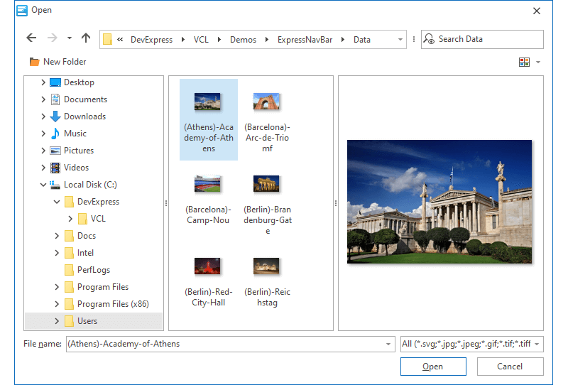 This release ships with new skinnable replacements for the standard VCL Open/Save Picture dialogs. Our dialogs can preview images from a number of different formats, including SVG.