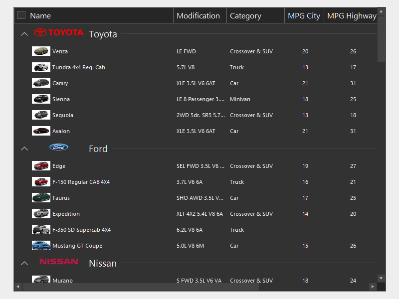 Data Grid, TreeList, and Vertical Grid