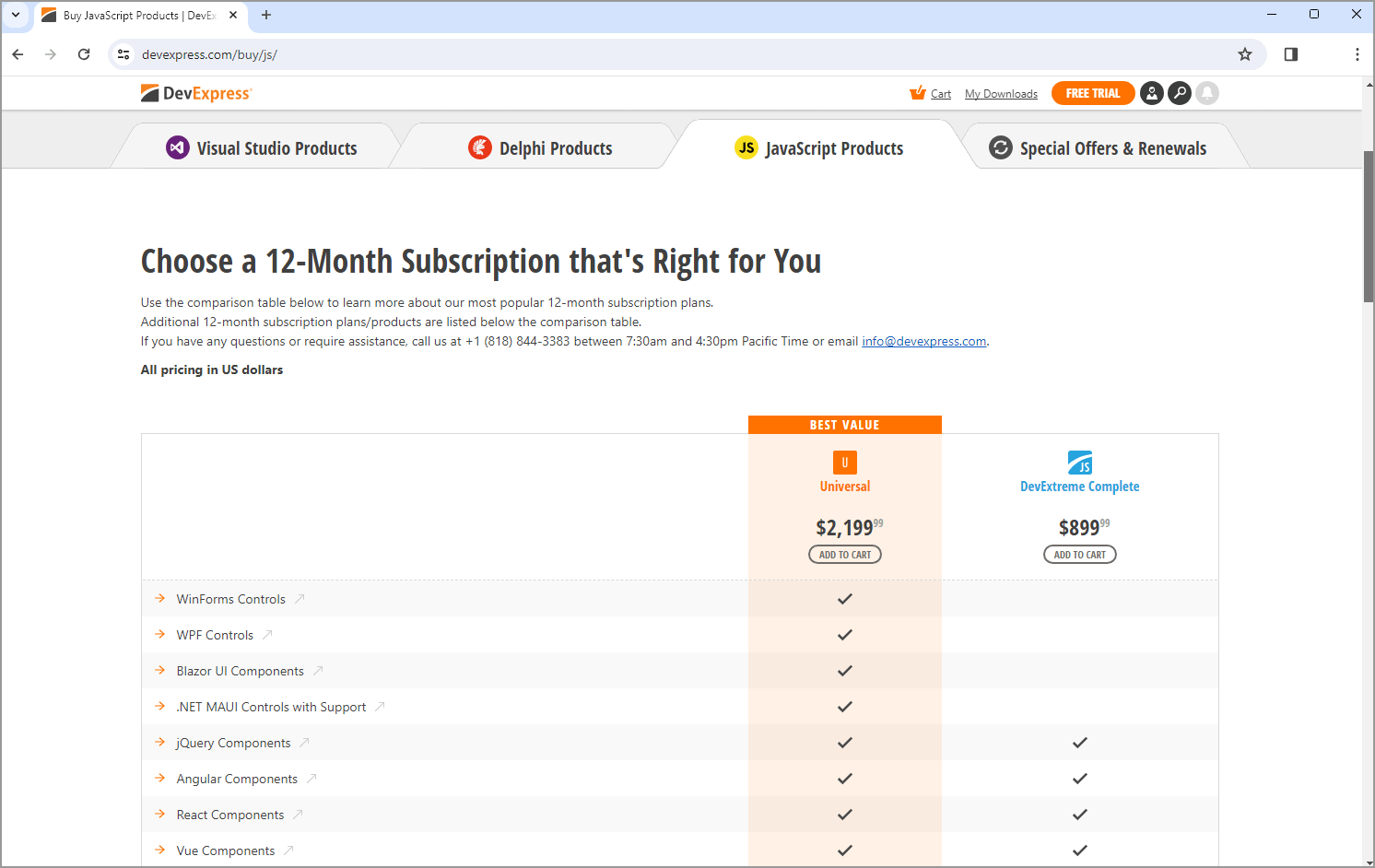 You can compare DevExpress product subscriptions and select the one that is most appropriate for your business needs by visiting our Purchase page at www.devexpress.com/buy.