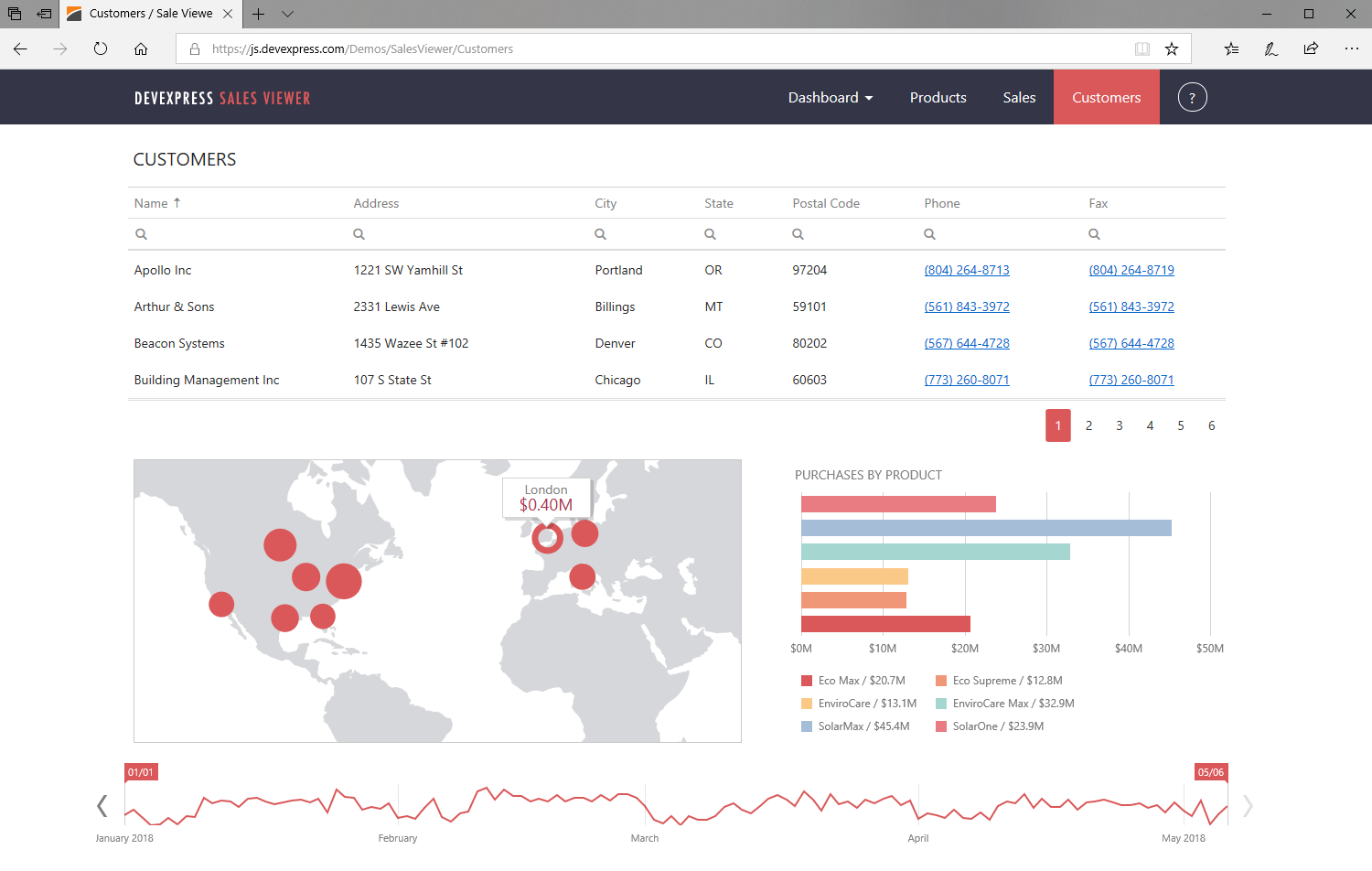 If you prefer client-side UI components, our HTML5/JavaScript product line includes a comprehensive suite of UI components designed to leverage the rendering capabilities of modern web browsers. The package also includes the following data visualization libraries: Reporting, Gauges, TreeMap, PivotGrid, Range and Charting.