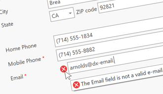 Our Windows Forms Data Editors Library ships with a powerhouse data validation and value formatting engine so you can reduce data entry errors and improve the overall usability of your Windows Forms application with meaningful error indicators and text-based feedback.