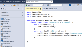 The Main Menu is stretched across the entire form with toolbars arranged below the main menu, although you are free to dock them to the left or right side of your form, or make them float.