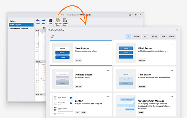 Our new HTML & CSS Template option for the Windows Forms platform allows you to re-imagine/re-design our data-aware controls, and create fully custom UI elements. The following DevExpress WinForms controls ship with built-in HTML & CSS Support.