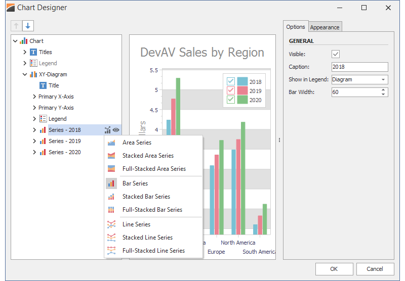 - Numerous customization options, including the built-in Chart Designer (available at both design and runtime)